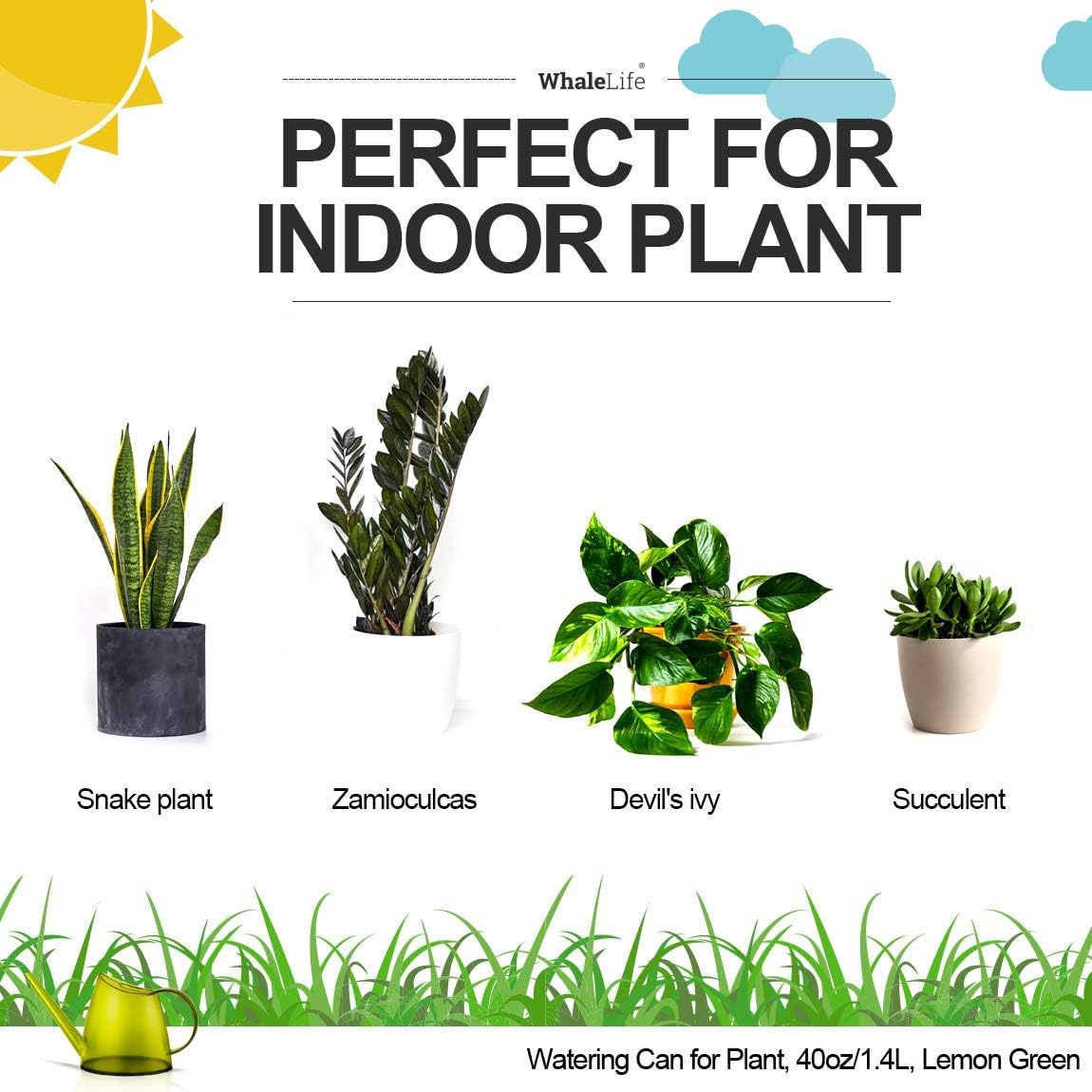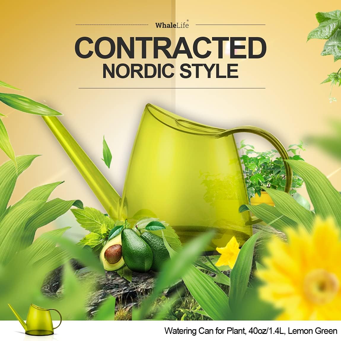 WhaleLife Indoor Watering Can for House Bonsai Plants (1.4L, Green Lemon)