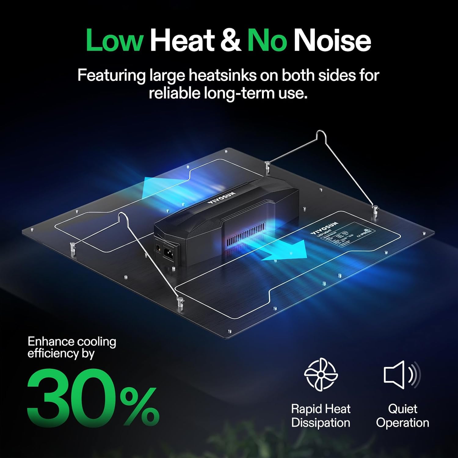 - Low Noise & Low Heat: VS4000 LED grow lights have a power supply and ventilation holes; No fans needed means low noise; Ambient heat around this light is very low, so there are no burns or damage to your plants
