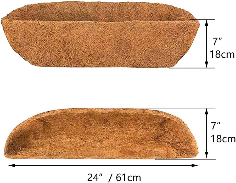 - ✅SIZE: 24"/61cm length, 7"/18cm Width, 7"/18cm depth. Trough shape extra thick replacement molded coir liners for window box. The specific size you can view the picture.