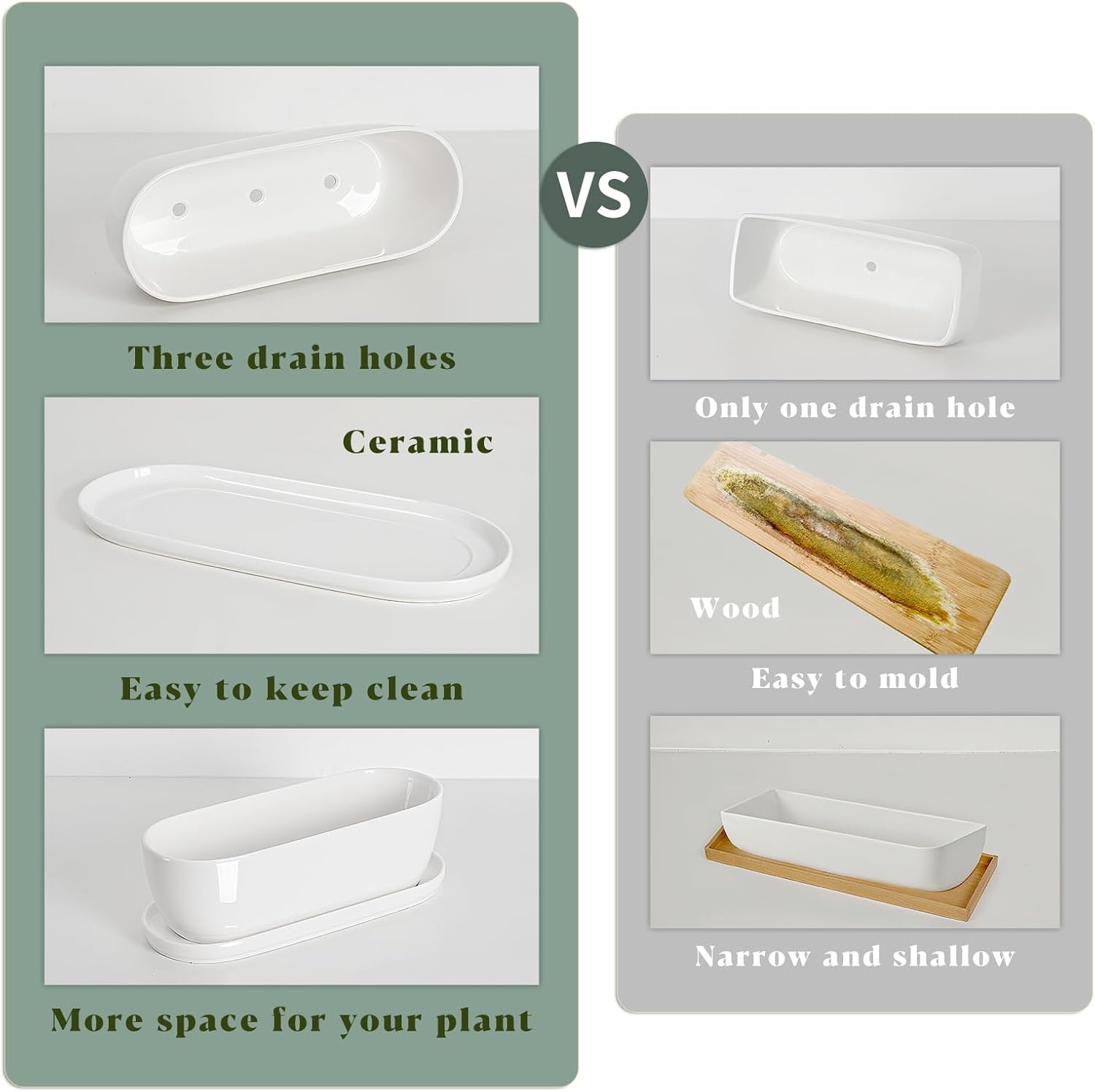 - Indoor Outdoor Ceramic Pots: 11’’ in length, 4.3'' in width, and 3.7’’ in Height. Great for decorating windowsill, tabletop, shelf, bedroom, kitchen, garden, and outdoor patio. Smooth inner finish for easy cleaning