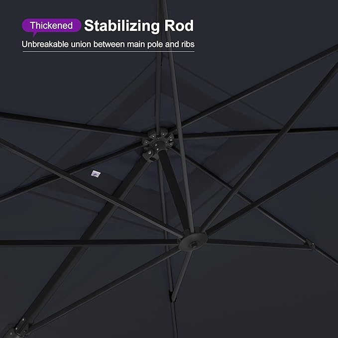 - Powder-coated aluminum pole of 4" diameter in sturdy and rustproof construction, all-aluminum umbrella bones and 8 heavy-duty ribs, anti-oxidation spray painted, maintain a long period life