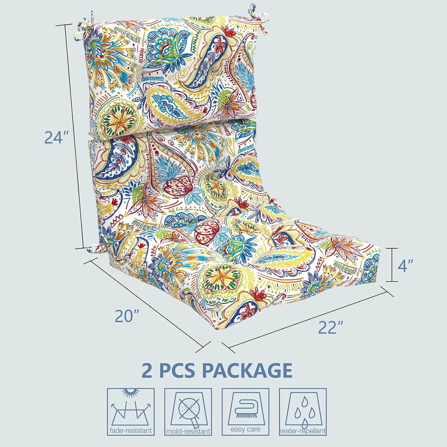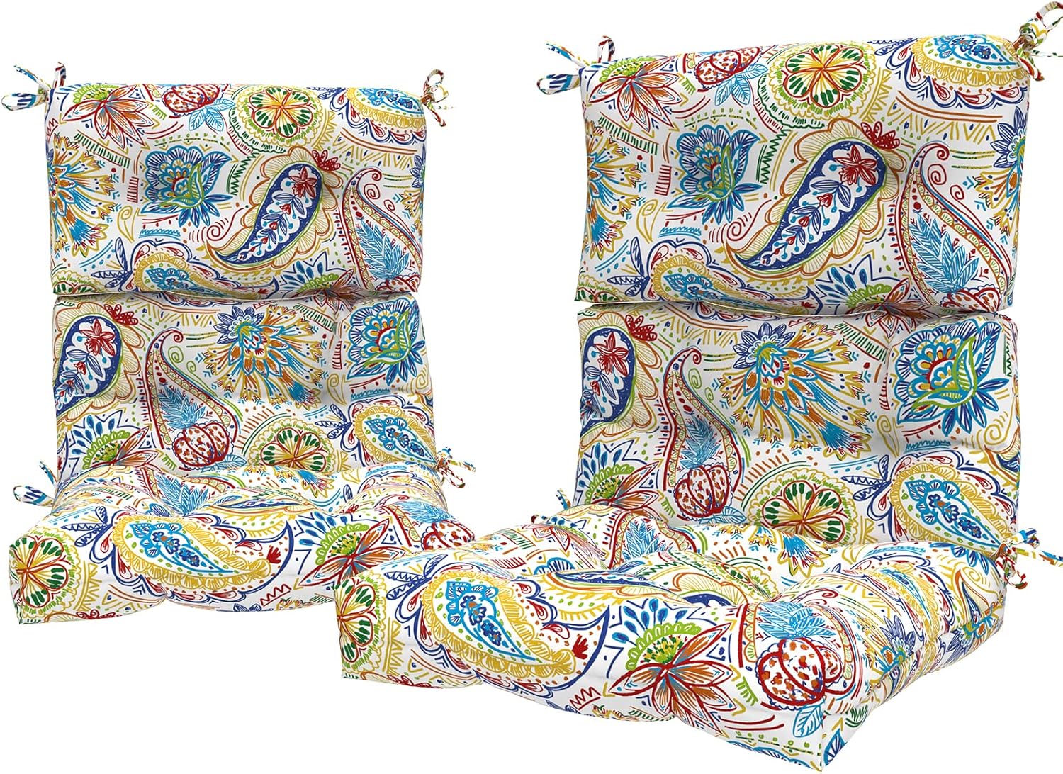 LVTXIII 2 Pack Outdoor/Indoor High Back Chair Cushions, Deep Seat Patio Seat and Back Cushion Set, Stuffed High Rebound Foam Rocking Chair Cushions, 44”x22”x4”, Paisley Chili