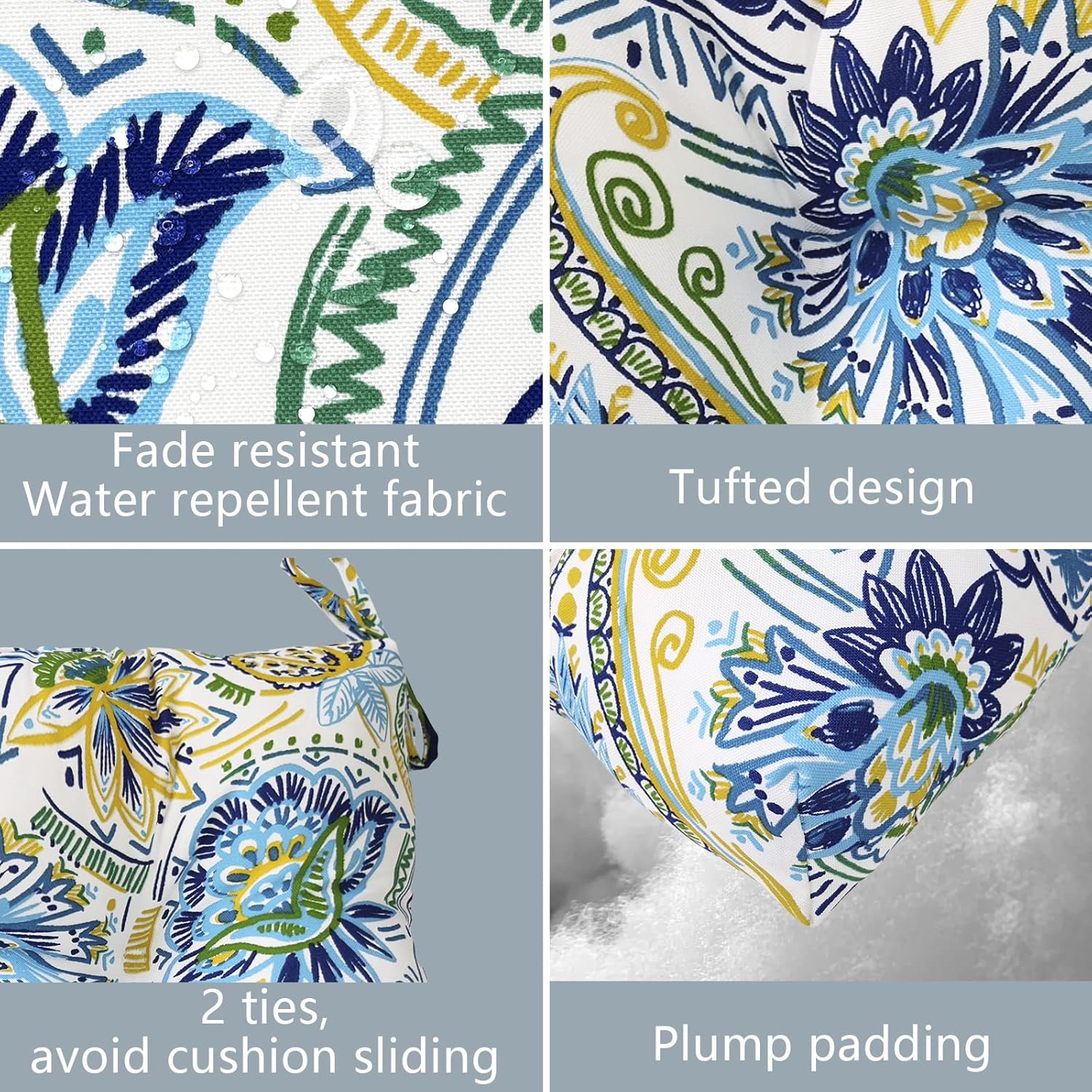 - 🌈Attached string ties help keep cushion securely attached to outdoor furniture; Circle tack construction prevents cushion fill from shifting and bunching. Vibrant colorful designs will impress every guest in your home.