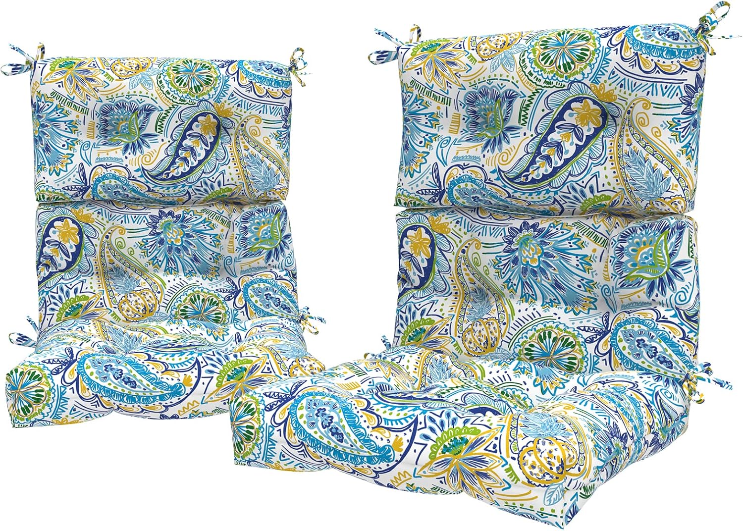 LVTXIII 2 Pack Outdoor/Indoor High Back Chair Cushions, Deep Seat Patio Seat and Back Cushion Set, Stuffed High Rebound Foam Rocking Chair Cushions, 44”x22”x4”, Paisley Blue
