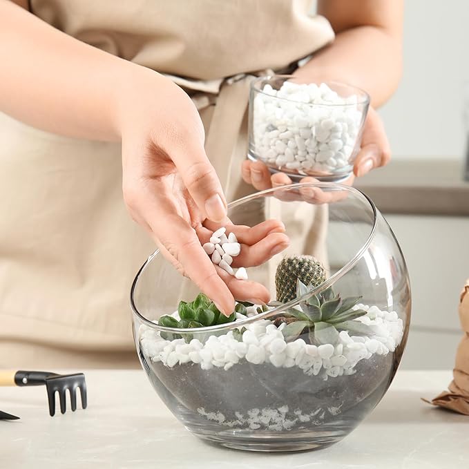 - White Color Stones: Each bag of pebble contains a wide variety of natural shapes. The mini rocks for plants offer an array of beautiful white color