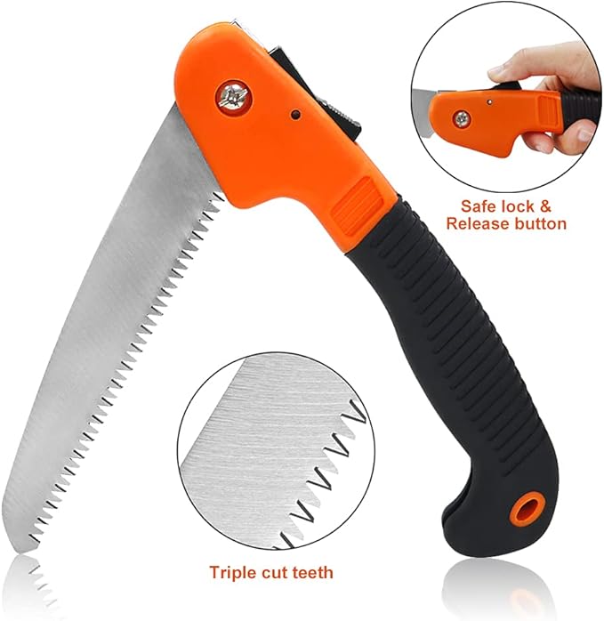 - š 10pcs Premium Gardening Tools: Our gardening tools can meet most gardening needs. The garden tool set have saw, snips, trowels, weeder, rake and fork which are use for loosening soil, weeding, cutting trees and branches, digging and tranplanting.
