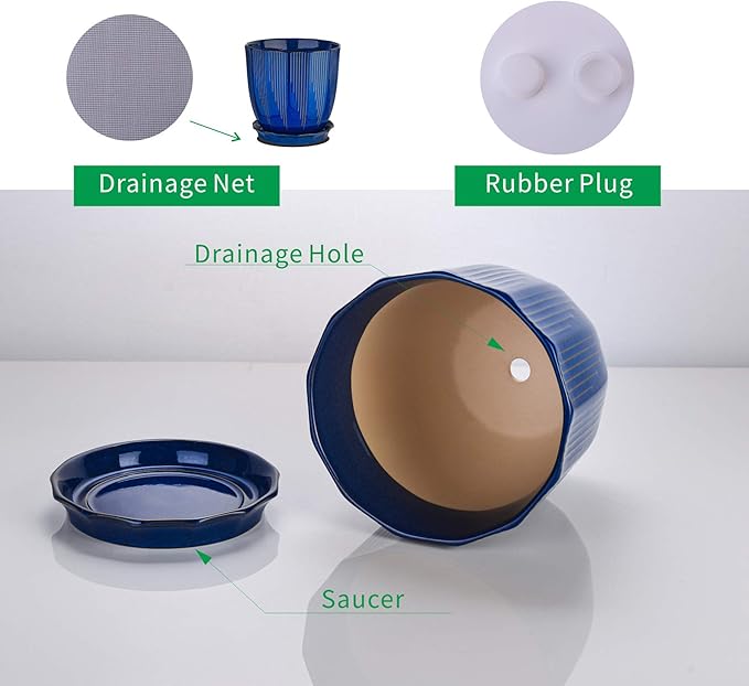 - Kit Includes: A ceramic pots for plants, a saucer, a drainage net, a rubber plug in each pack. Great gifts for housewarming! ( Tips: plants not included)