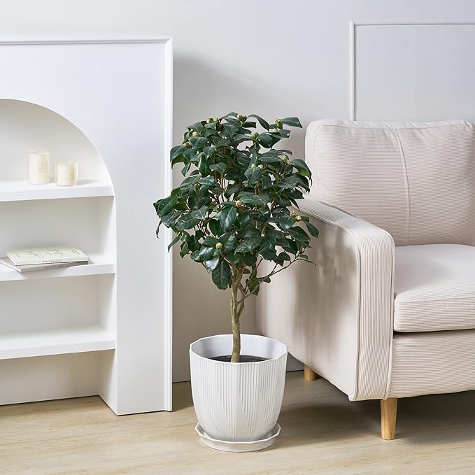 ADN 10 Inch Ceramic Planter Pot with Drainage Hole and Saucer,Large Round Plant pots for Indoor Outdoor Plants,Modern Flower pots, White