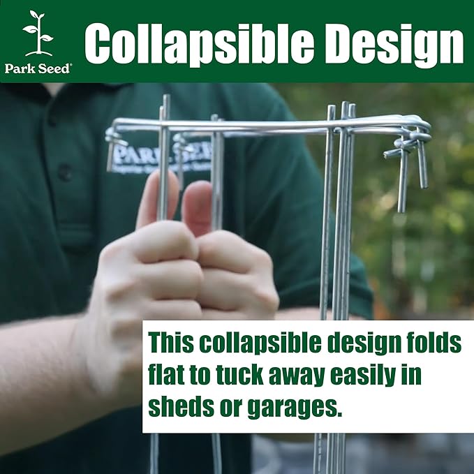Park Seed Tomato Cages – 48" Tall Heavy-Duty Plant Supports for Tomatoes, Peppers, Cucumbers, and Climbing Vegetables, Foldable Metal Garden Trellis, Pack of 3