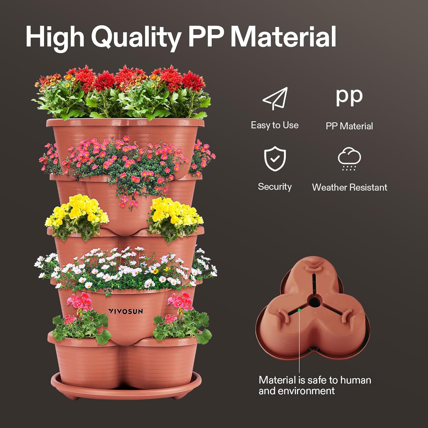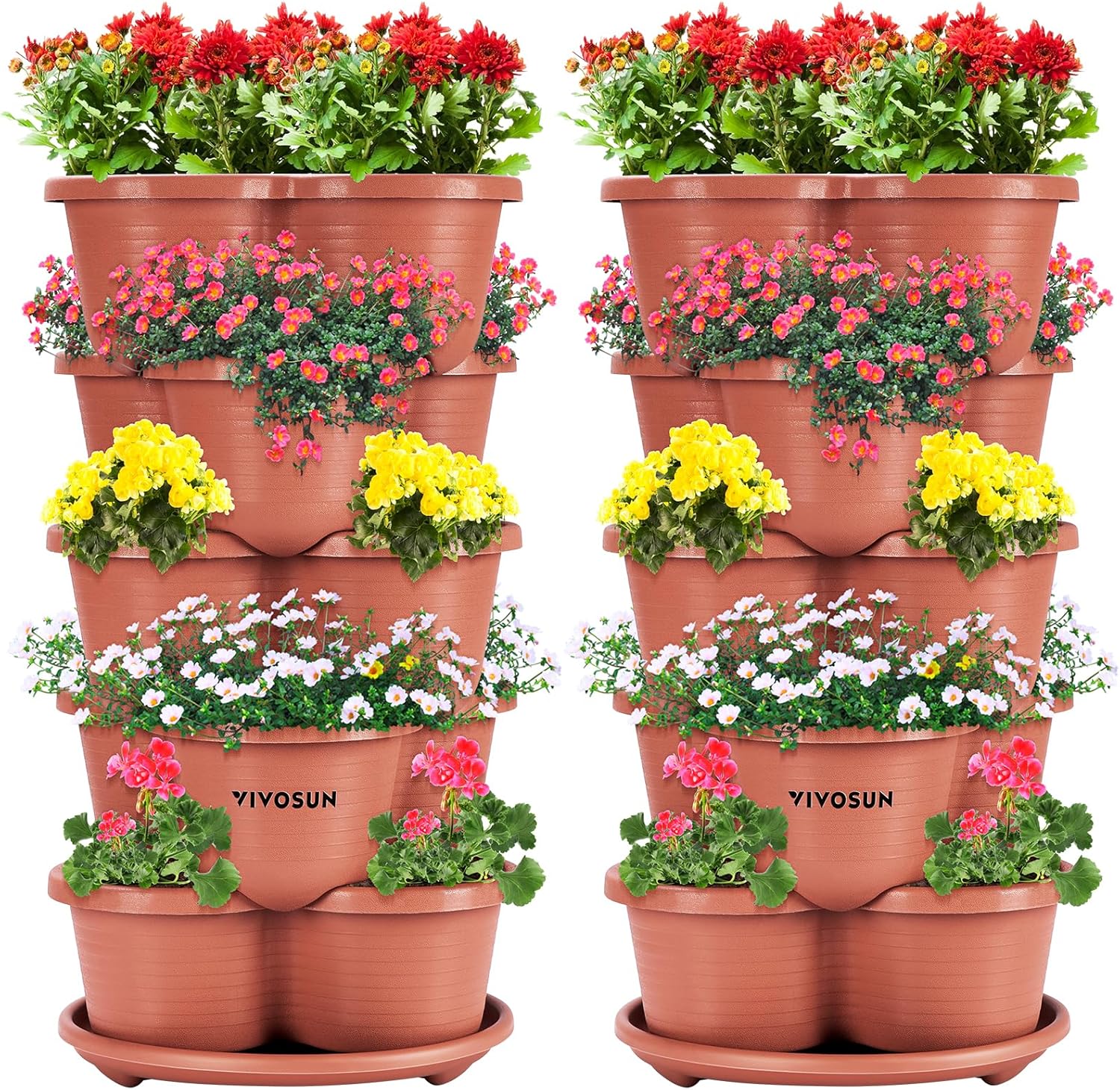 VIVOSUN 2-Pack 5 Tier Vertical Gardening Stackable Planter for Strawberries, Flowers, Herbs, Vegetables, Brown