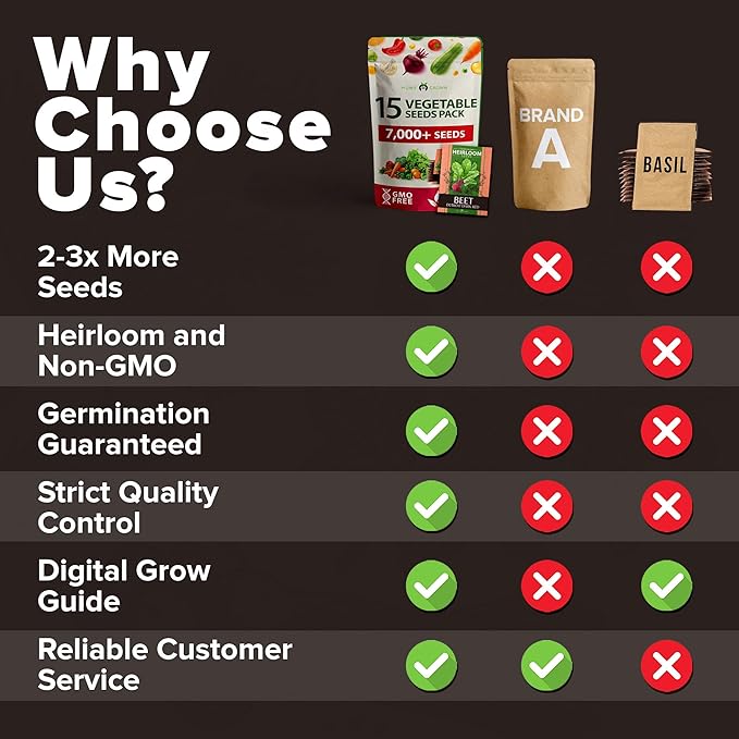 - High Germination Guarantee: Consistently tested at over 95% germination rate; Includes comprehensive growing guide with expert gardening tips; Perfect non GMO vegetable seeds for beginners and experienced gardeners; Start your vegetable garden seeds with confidence