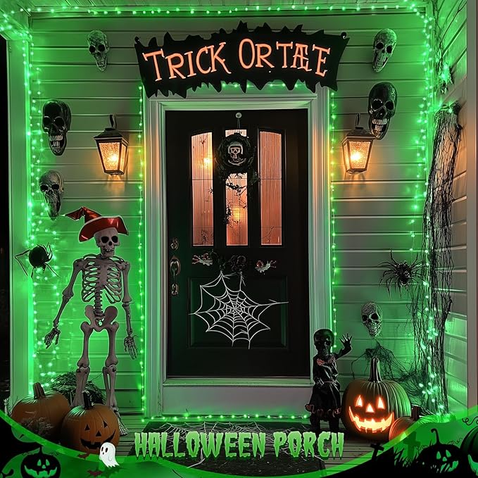 - 2 Pack Green Halloween Lights: 100 LED bulbs on 32.8 feet copper wire, with a steady 360-degree viewing angle, ideal for decorating your gardens, patio, yard, deck, stage, holiday, etc. What's more, in the dark, the wire fades invisible, leaving only the bright Green Christmas lights, creating a joyful ambiance to Christmas decorations