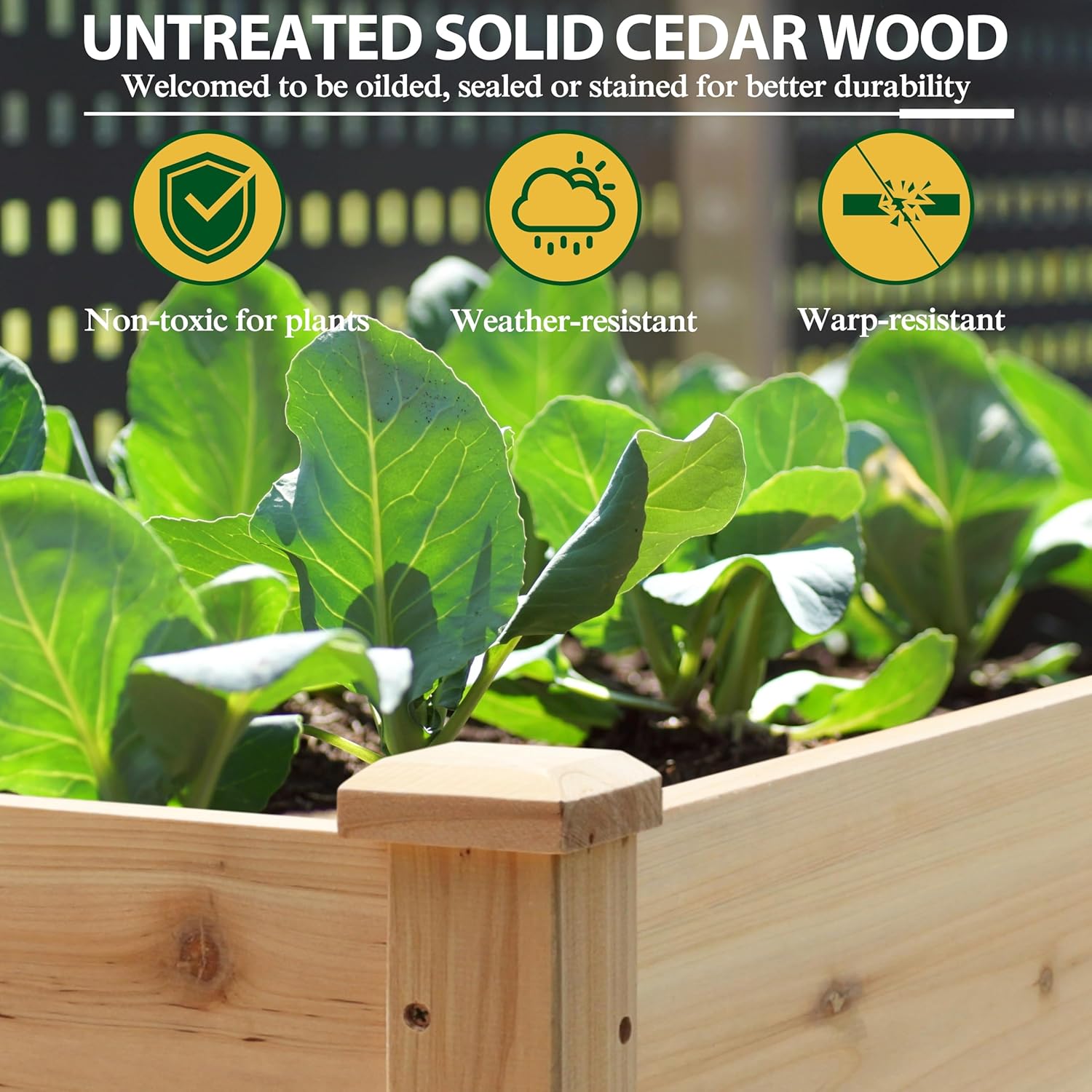 - PREMIUM FIR WOOD CONSTRUCTION-The structure of this raised garden bed is made of solid cedar which is known for its nature of eco-friendly and sturdiness. No doubt this garden bed would meet your needs of growing herbs and vegetables with care for both outdoor and indoor! Feel the touch of its smooth surface for the superiority.