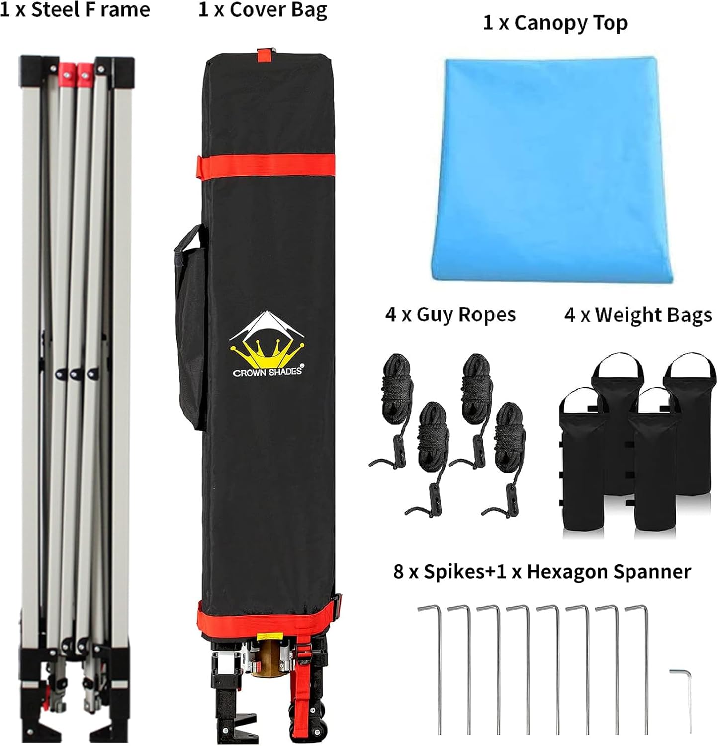 - HIGH GRADE STEEL FRAME - The durable, high-grade, corrosion-resistant steel truss frame with hardened through bolts comes pre-assembled and can be set up without any tools. Engineered to support up to 120 lbs. distributed across the frame, it ensures robust and reliable performance. The extended ceiling assembly and upgraded high peak design make it easier for rainwater to run off, preventing water pooling on the canopy. Perfect for extended outdoor use at markets, festivals, and exhibitions.