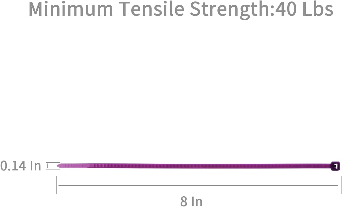 XINGO 8 Inch Purple Cable Zip Ties (500 Pack), 40 Lbs Tensile Strength-Heavy Duty, Self-Locking Nylon Plastic Nylon Wire Ties for indoor and outdoor use