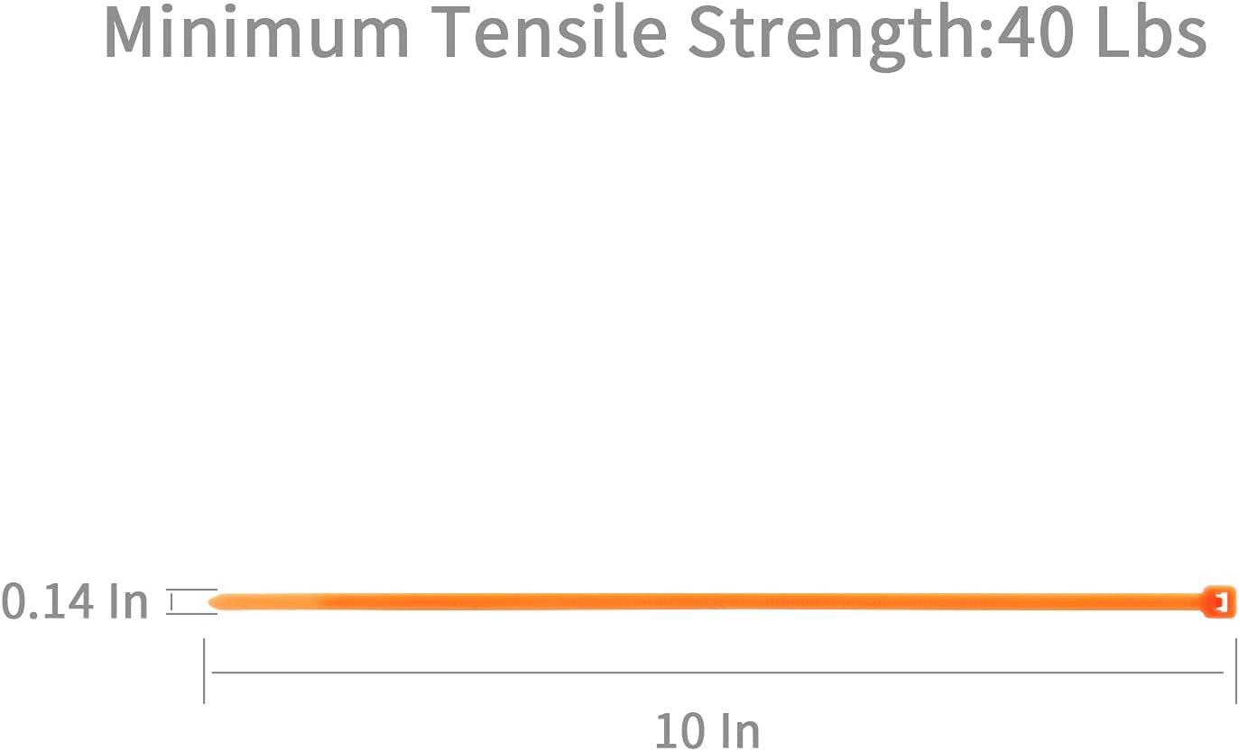 XINGO 10 Inch Cable Zip Ties (500 Pack), 40 Lbs Tensile Strength-Heavy Duty, Self-Locking Nylon Plastic Nylon Wire Ties for indoor and outdoor use(Orange)