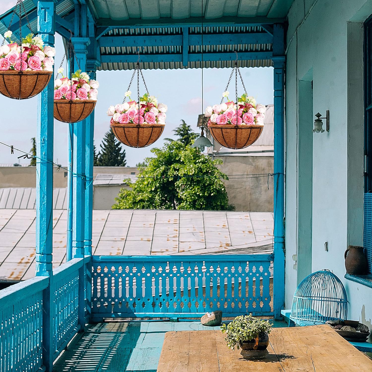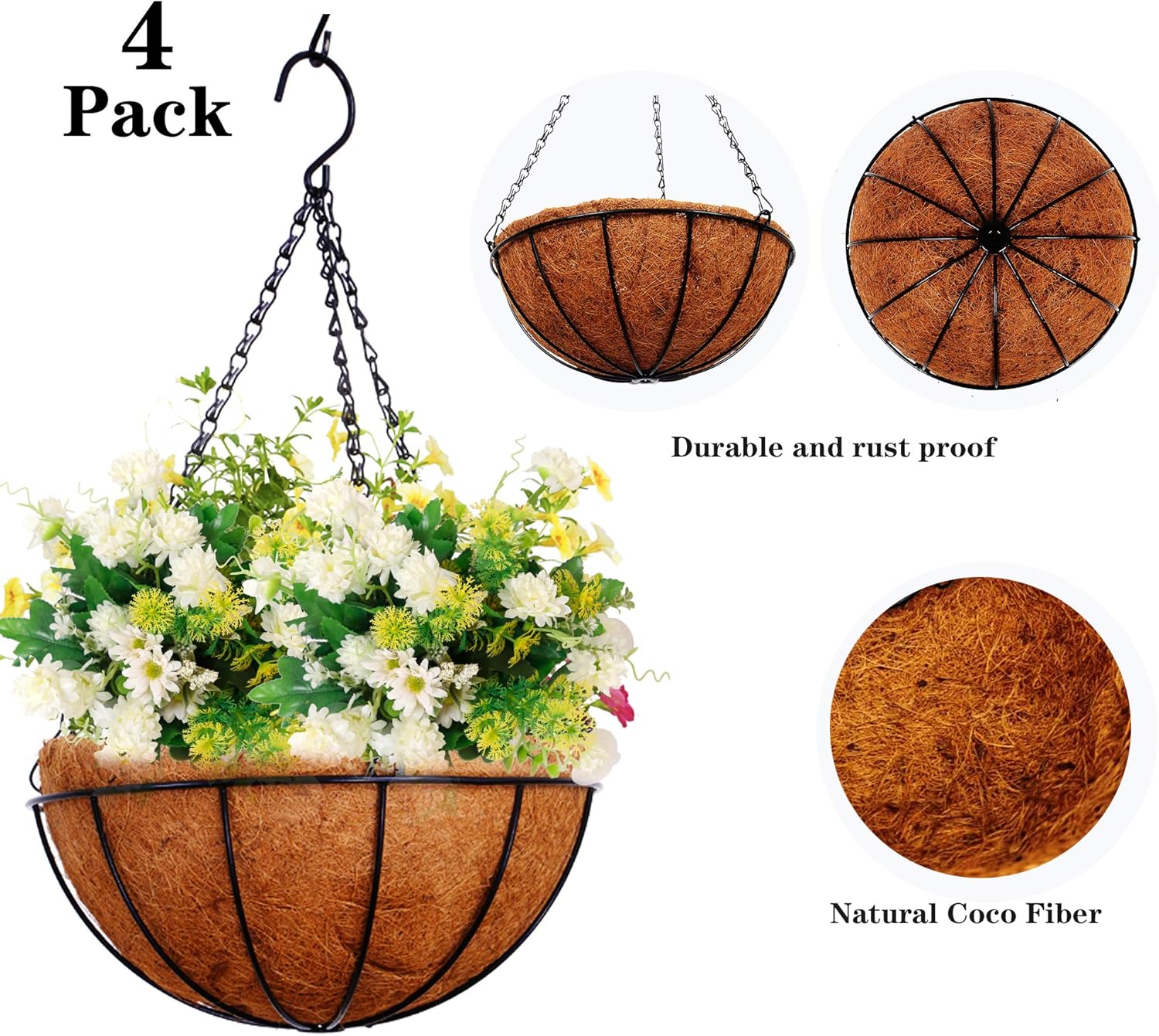 Hanging Planters Basket Outdoor Indoor(14 inch 4 Pack)-Coconut Coir Hanging Baskets for Plants Outdoor,Metal Wire Baskets with Coco Liner Window Box Planters, hanging Flower Pots For Railingsā¦