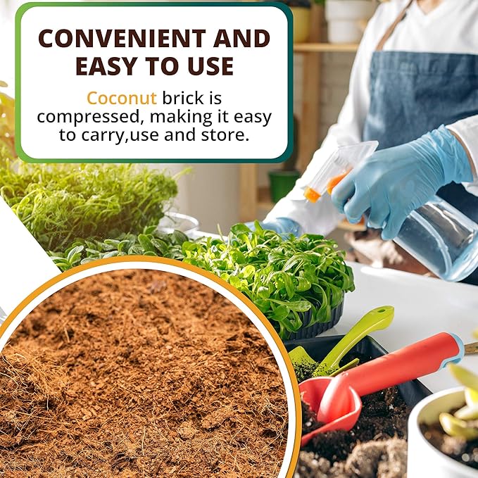 Coco Coir Brick 11 LB (5kg) - Premium Compressed Coconut Fiber Block for Indoor Plants, Seed Starting & Hydroponics - Low Salt Triple Washed - Expands to 75 Quarts - 100% Natural Peat Alternative