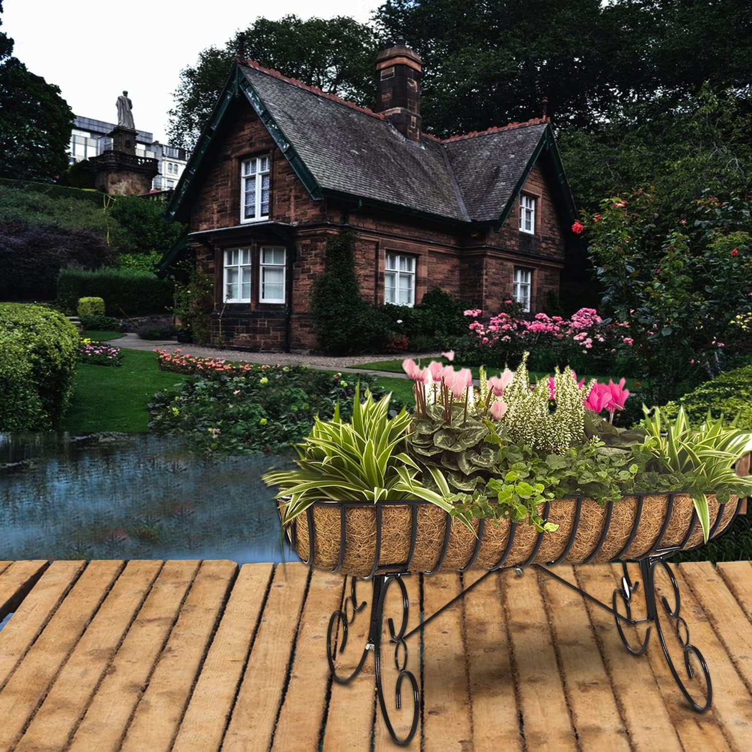 - 【Half Moon Shape】 The wall-mounted coco liner trough has a linear shape like a half moon. Ideal for home garden window wedding decor, hanging several coco liners for planters baskets at different heights, which display your ornament in a fresh new way.