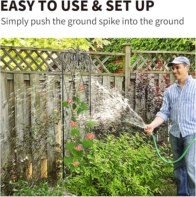 - Sturdy Stability Structure: With heavy duty iron frame and powder coated welded material. 8 inch ground spike inserts into the ground and add stability to the trellises.