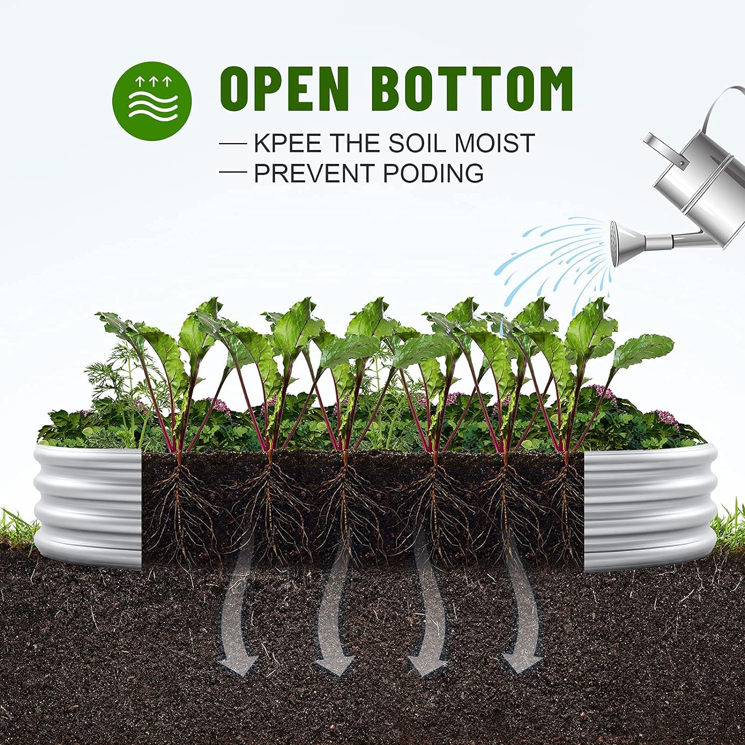 - Open base: This galvanized raised garden beds for vegetables large metal planter box is designed with an open base, which can effectively avoid water accumulation and decay, protect the roots of plants, and allow the roots to better absorb nutrients