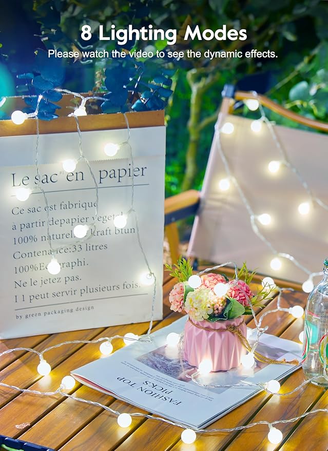 - 8 Light Modes - The backyard lights outdoor create aesthetic atmosphere with various light modes: Combination, in waves, sequential, slow glow, chasing/flash, slow fade, twinkle/flash, and steady-on