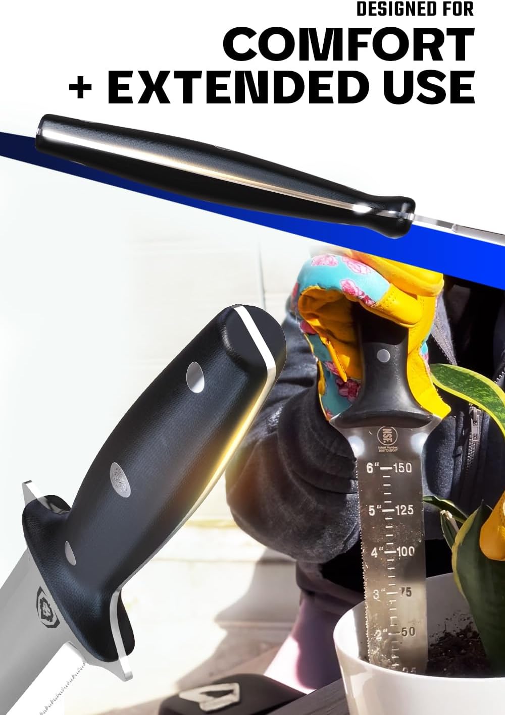 DALSTRONG Hori Hori Garden Knife - 6.5 inch - Straight Edge + Serrated Edge - Gladiator Series Elite - Forged German Steel - Sheath Guard Included - Weeding, Cutting, Digging, Planting - NSF Certified