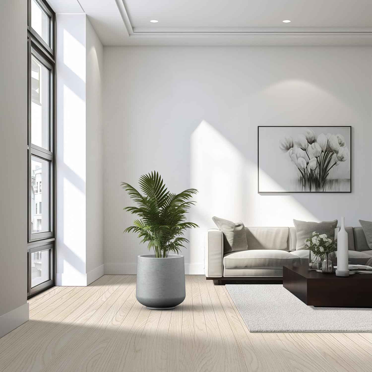 Kante 15.3" Dia Round Concrete Planter,Large Planter Pots Containers with Drainage Holes for Patio, Balcony, Backyard, Living Room