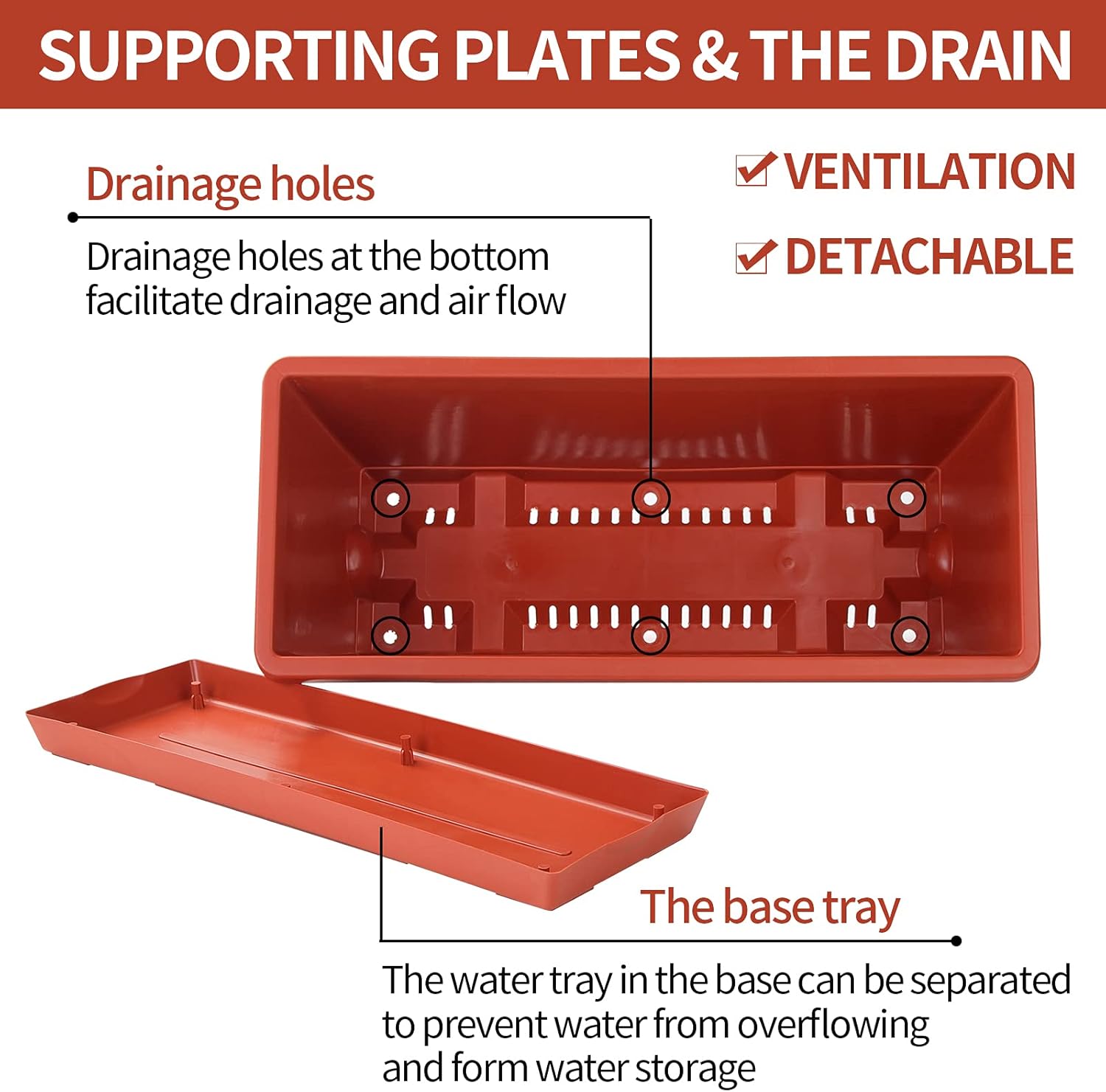 - MULTIPURPOSE - The rectangular red planter is simple and practical, which makes it a nice home decor for your windowsill, garden, porch, balcony, kitchen, deck, patio, and other indoor outdoor use. Suitable to plant miniature roses, tulip, carnation or other flowers, vegetables, fruits.