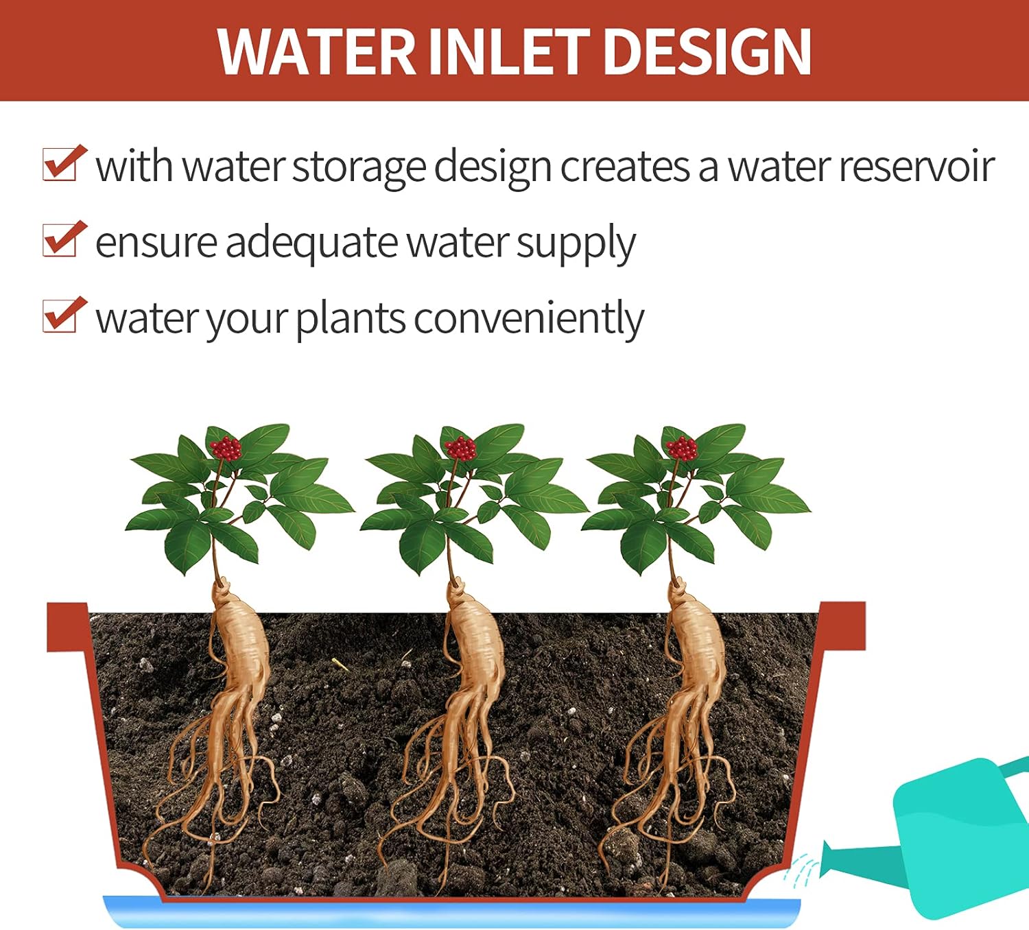 - WATER INLET DESIGN - The rectangular plant pots are designed with 2 water inlets at the bottom, so you can water your plants from the water inlet directly. This design ensures that you can water your plants well without making the tables or windowsills get wet, keeping it clean and dry.