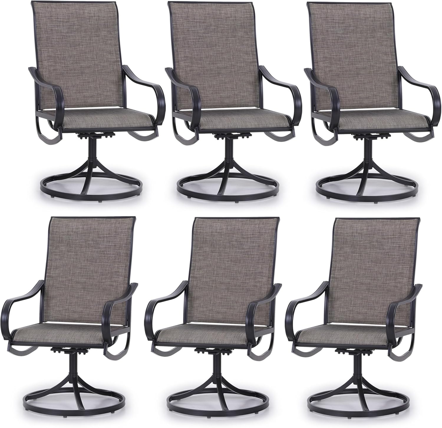 PHI VILLA Patio Swivel Dining Chairs Set of 6 Outdoor Metal Chair with Textilene Mesh Fabric, Patio Gentle Rocker Chair, Black Frame for Deck Garden