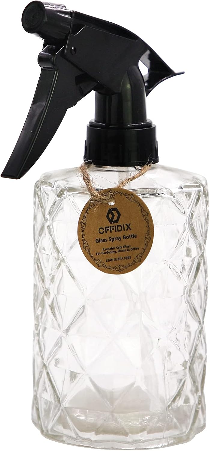 OFFIDIX Glass Spray Bottle, Plant Mister,Pressure Watering Can, Water Spray Bottle with Adjustable Nozzle, 0.35L/11.8oz Handheld Spray Bottles for Outdoor Indoor Garden, Plants, Cleaning Solutions