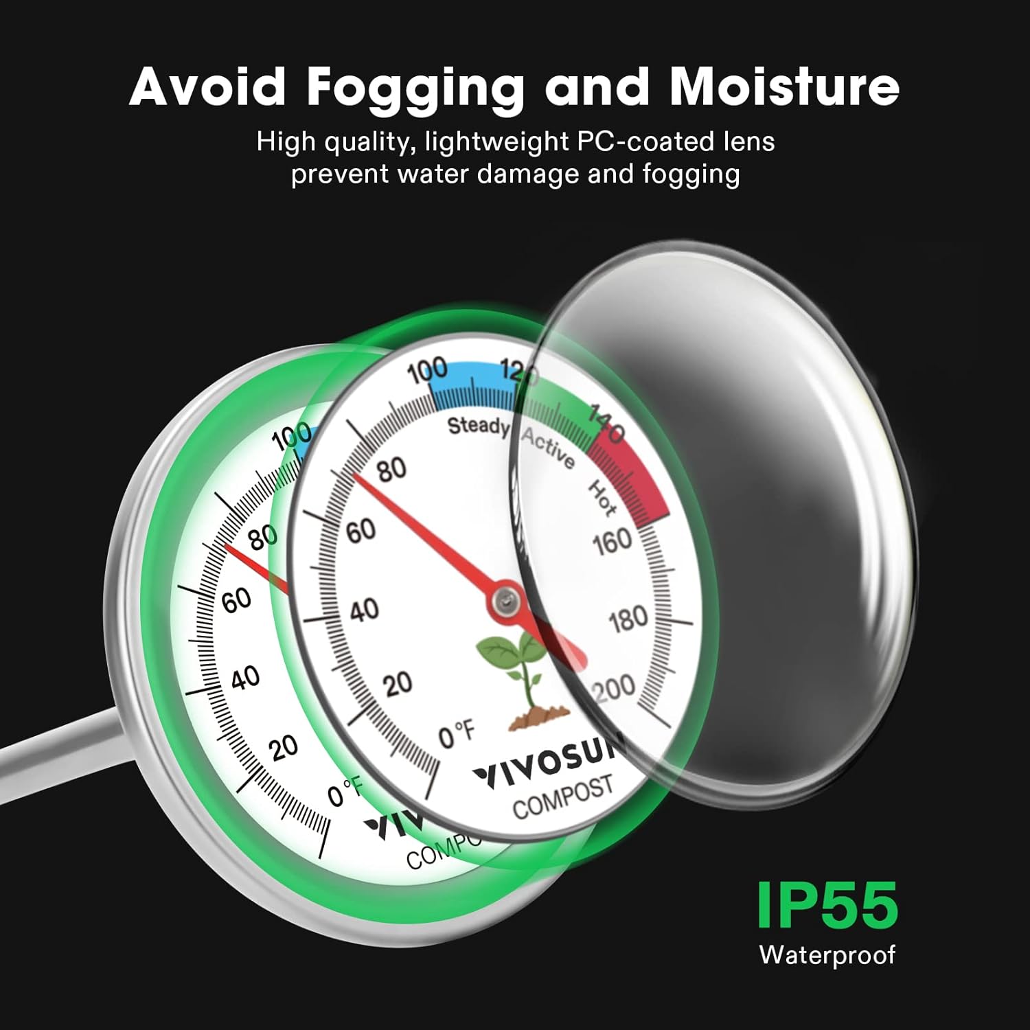 VIVOSUN Compost Thermometer, 20 Inch Backyard Soil Thermometer with Stainless Steel Dial for Composting Bins, Outdoor Gardening and Planting (0-200°F)