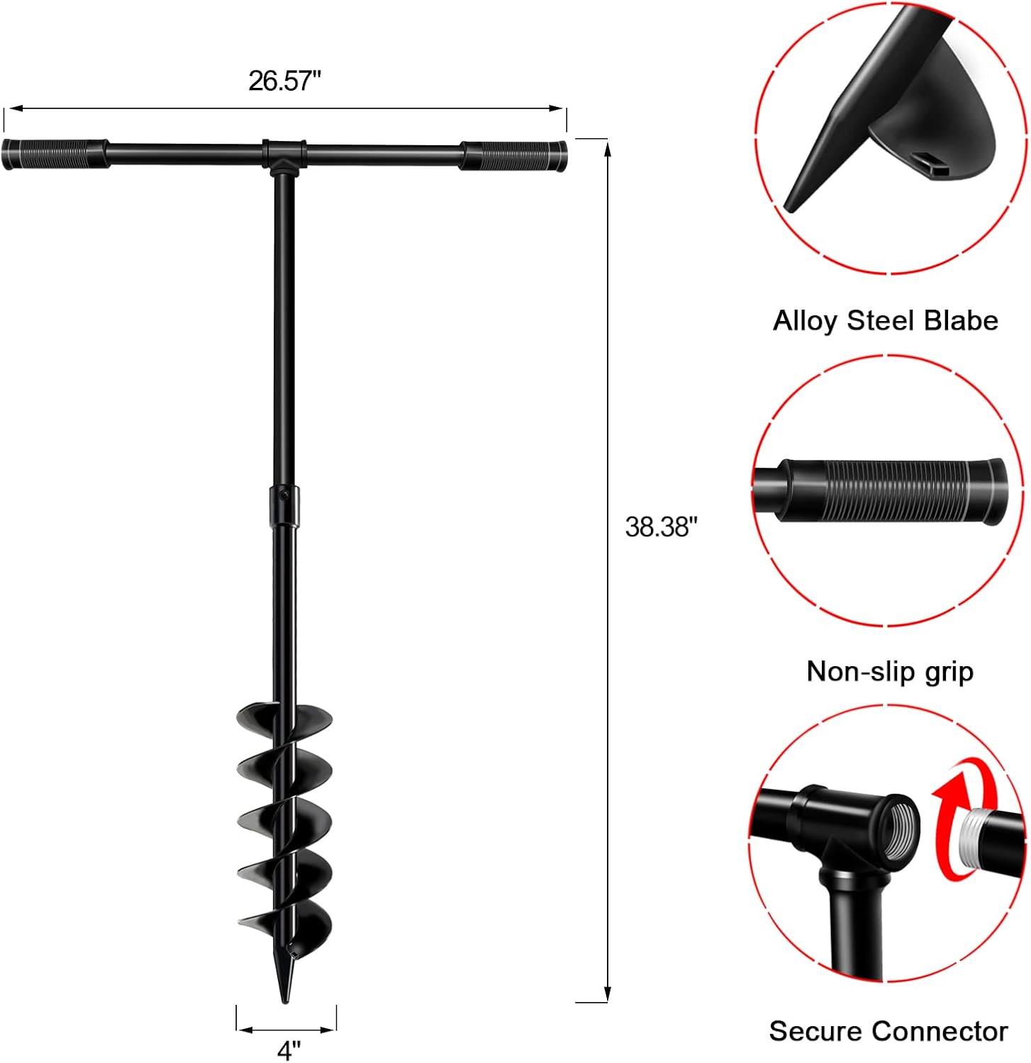 - 【Hand Drill Auger】LONGRUN garden hole digging drill bit has three-stage connection structure, total connection length is 38", diameter is 4", wide grip is attached with rubber sleeve, rubber sleeve surface texture design can increase grip.