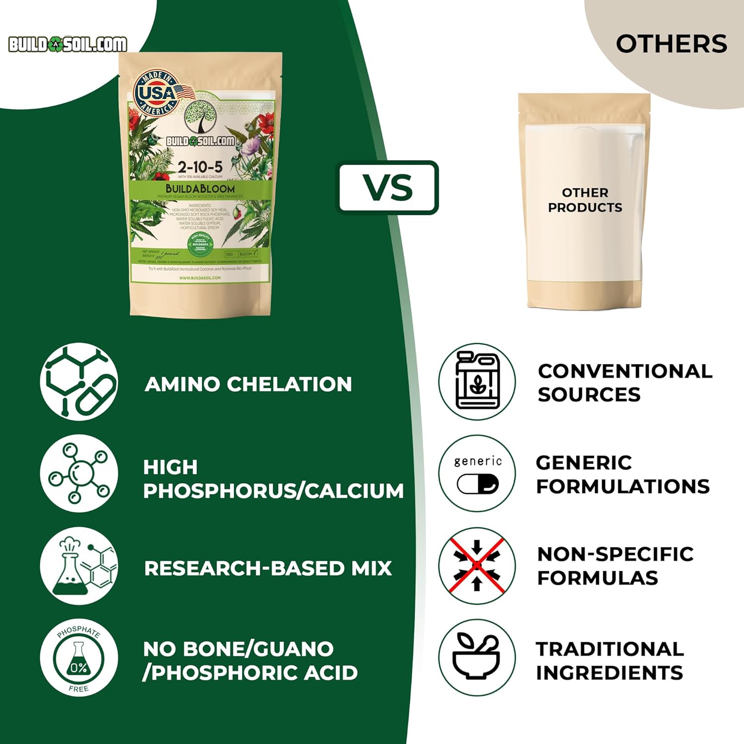 BuildASoil Vegan Bloom Booster & Flower Fertilizer โ Organic Hydrangea & Rose Fertilizer Plant Food, Bloom Booster Fertilizer for Outdoor Gardens & Houseplants โ Natural Soil Flower Food, 1 LB Bag
