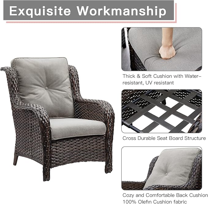 - 【Deep Seating & Comfort Cushions】This garden furniture set features deep and wide seats with 4-inch thick sponge-padded cushions.The cushions offers good resilience,not easy to deform or slide,also protect your lumbar and offer a comfortable sitting experience.