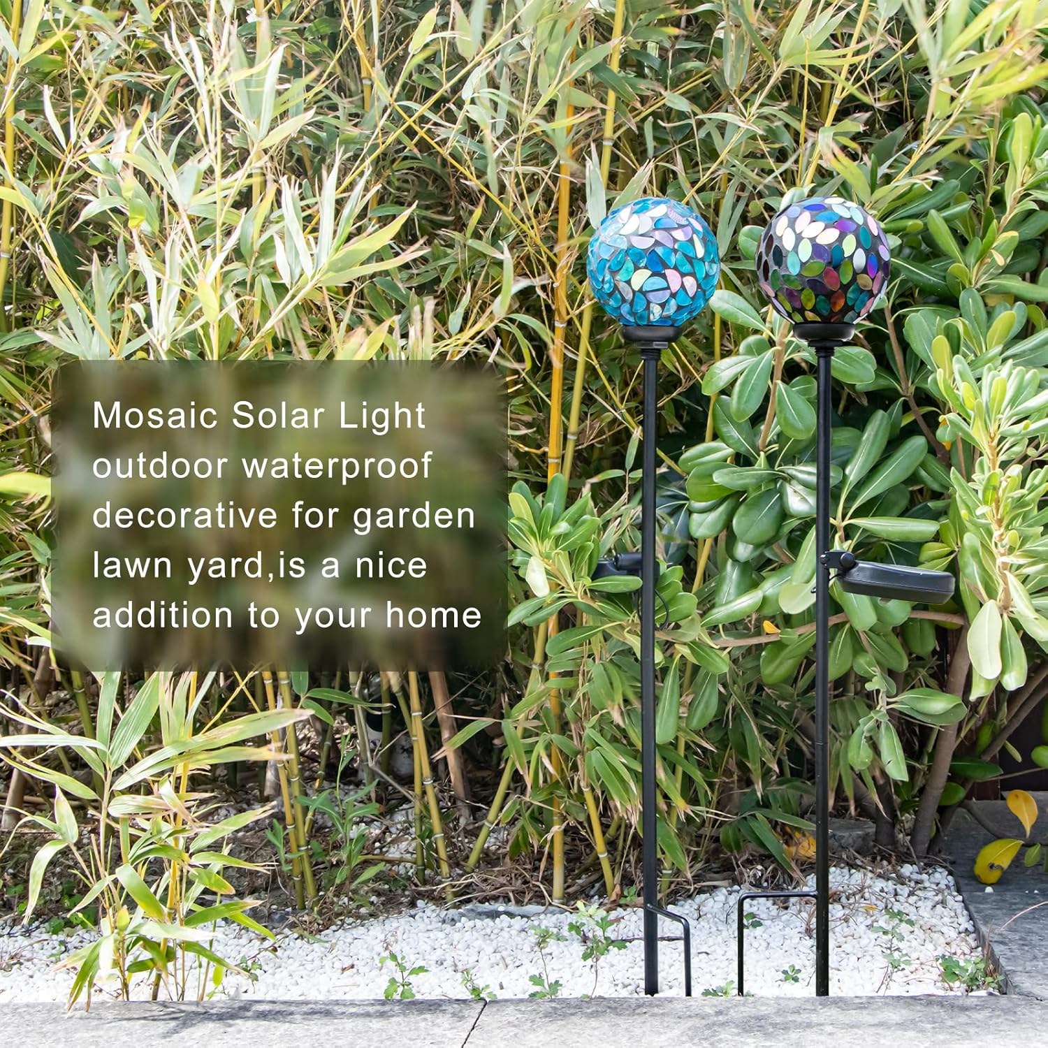 - Mosaic Globe Design:Mosaic solar garden lamp adopts hand-made color flower petal glass fragment design, solar ball light makes your garden more beautiful and elegant. Ideal choice of outdoor decorative lamp