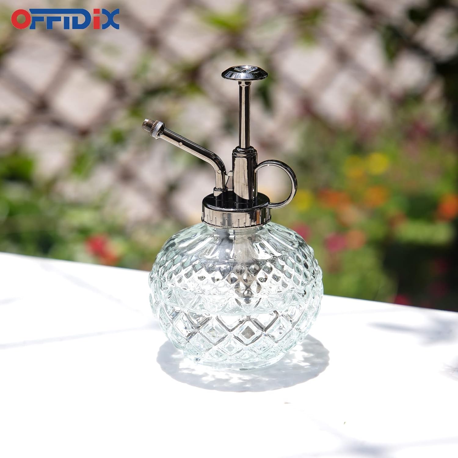 OFFIDIX Plant Mister, 300ML Vintage Glass Spray Bottle with Plastic Top Pump, Small Decorative Spritzer Watering Can for Indoor Outdoor House Plants (Transparent)