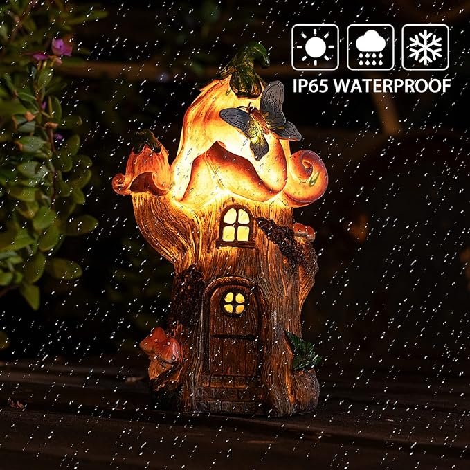 - TOTALLY ORGINAL DESIGN: This adorable solar gnome house figurine with Butterfly and cute mushroom. was Brilliantly handcrafter by over 15 of the worlds most tallented artist. Each design is hand Sculpted and handpainted to perfection with layers of extra thick and shiny UV protected waterproof paint,leaving colors looking bright and Vibrant for years to come.