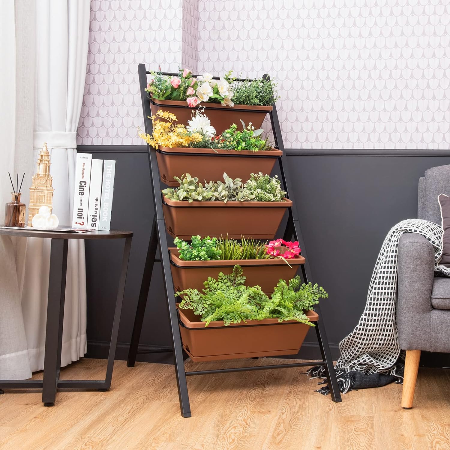 Giantex Vertical Planter Raised Bed, Elevated Garden Beds with Water Drainage Hole, Freestanding 5 Container Boxes for Herb Vegetables Flowers Growing, Outdoor Indoor Patio Balcony (Brown, 1)
