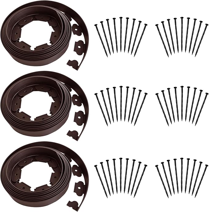 Landscape Edging 60ft Length No Digging Garden Edging Kit Include 54 Spikes, Premium Yard Edging Fence with One Spike per Feet, Brown