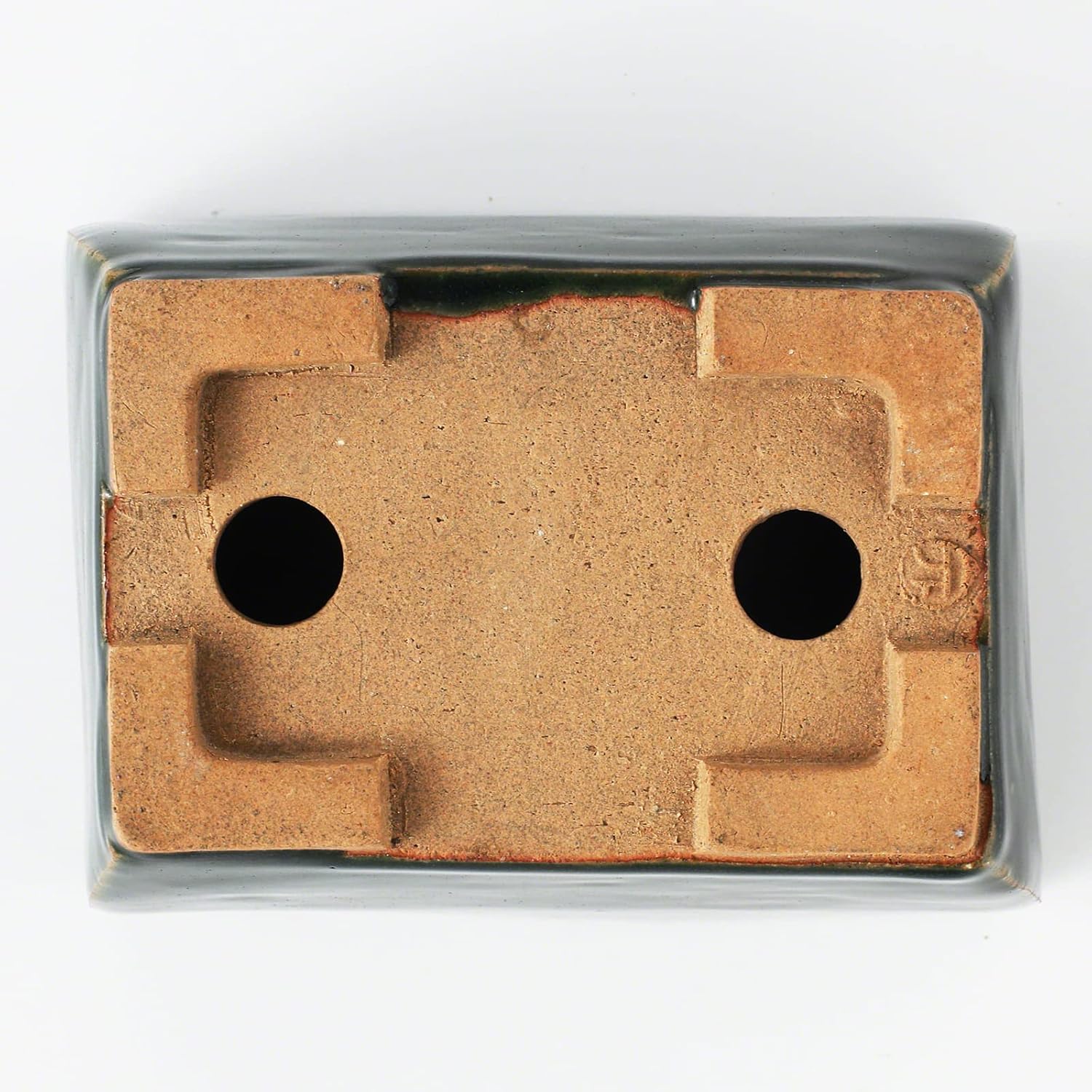 - 【Features】Rectangular bowl with a beautiful and shiny olive green glaze. Thanks to the firing process, Tokoname ware pots are less likely to crack when temperature changes. Also, with 1 large hole for drainage and 2 small holes for wires, it's great bonsai pot for repotting and training trees.