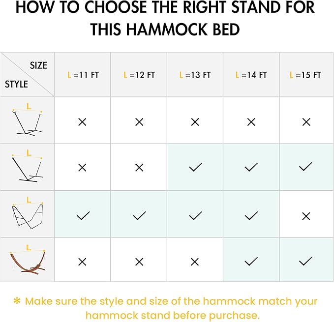 - HAMMOCK FOR OUTSIDE: Equipped with build-in 12.6 inches chains, the maximum length of this rope hammock with spreader bar can be up to 157 inches. Fit 13-15 FT hammock stand(not included). You can also use tree hooks(come with hammock) to hang the outdoor hammock to the trees. You can read, listen to music and relax in the garden, balcony, patio, backyard, etc