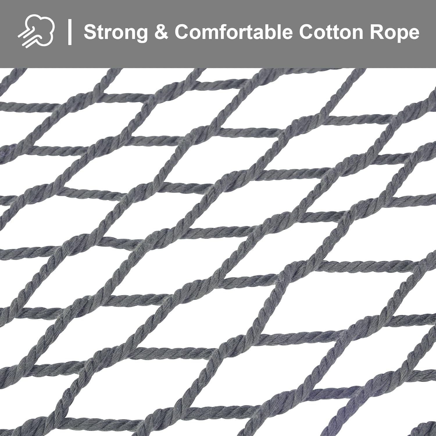 - Strong Max-Density Rope: Polyester ropes are weather resistant and won't sag after long term use. The 3 ply twisted polyester ropes ensure maximum density and perfect flexing capability. The 20 suspension cords at both ends of the hammock bed ensure even weight distribution and better balance. Skilled artisans meticulously hand weave the bed to achieve the precision and balanced loops