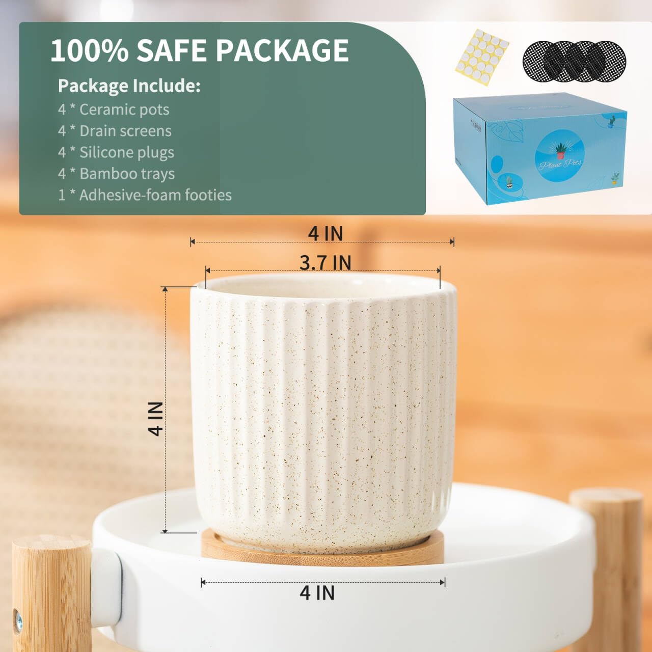 - 4 Inch Small Size - 4" diameter x 4" height is a perfect size for little plants' thrive. Great for indoor plants, snake plants, succulent plants, flowers or a few artificial plants. (NOTE: Plants NOT Included, this product may be in 0.05 inches out.)