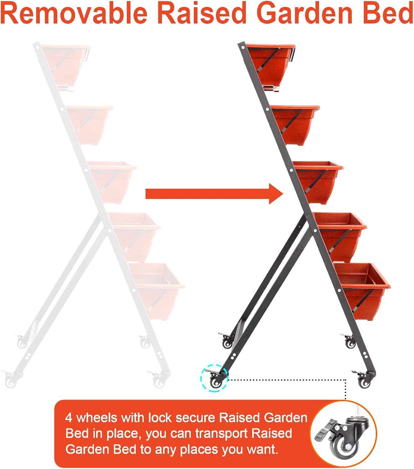 EDOSTORY 4.5 FT Height Vertical Garden Planter Removable Brick Red Raised Bed Box with 5 Container Boxes,Digging Claw Gloves,Trowel,Purning Shears for Outdoor Vegetables Flowers