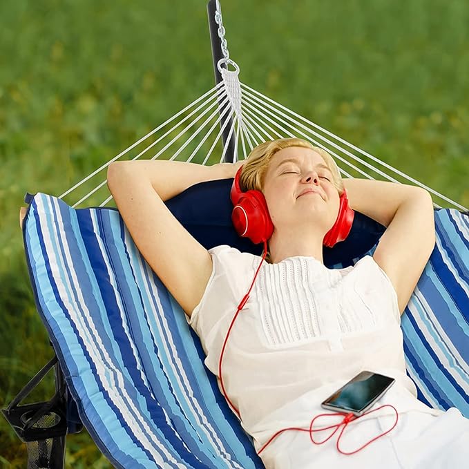 - 👍【 Extra Large Lying Area】Our double hammock gives you plenty of space to stretch your limbs. With the 75.5” x 53” lying surface, you can escape the stress of everyday life in an easy way and give yourself a relaxing rest. What’s more, it also comes with a soft mat and a pillow, allowing you to enjoy bed-like comfort.