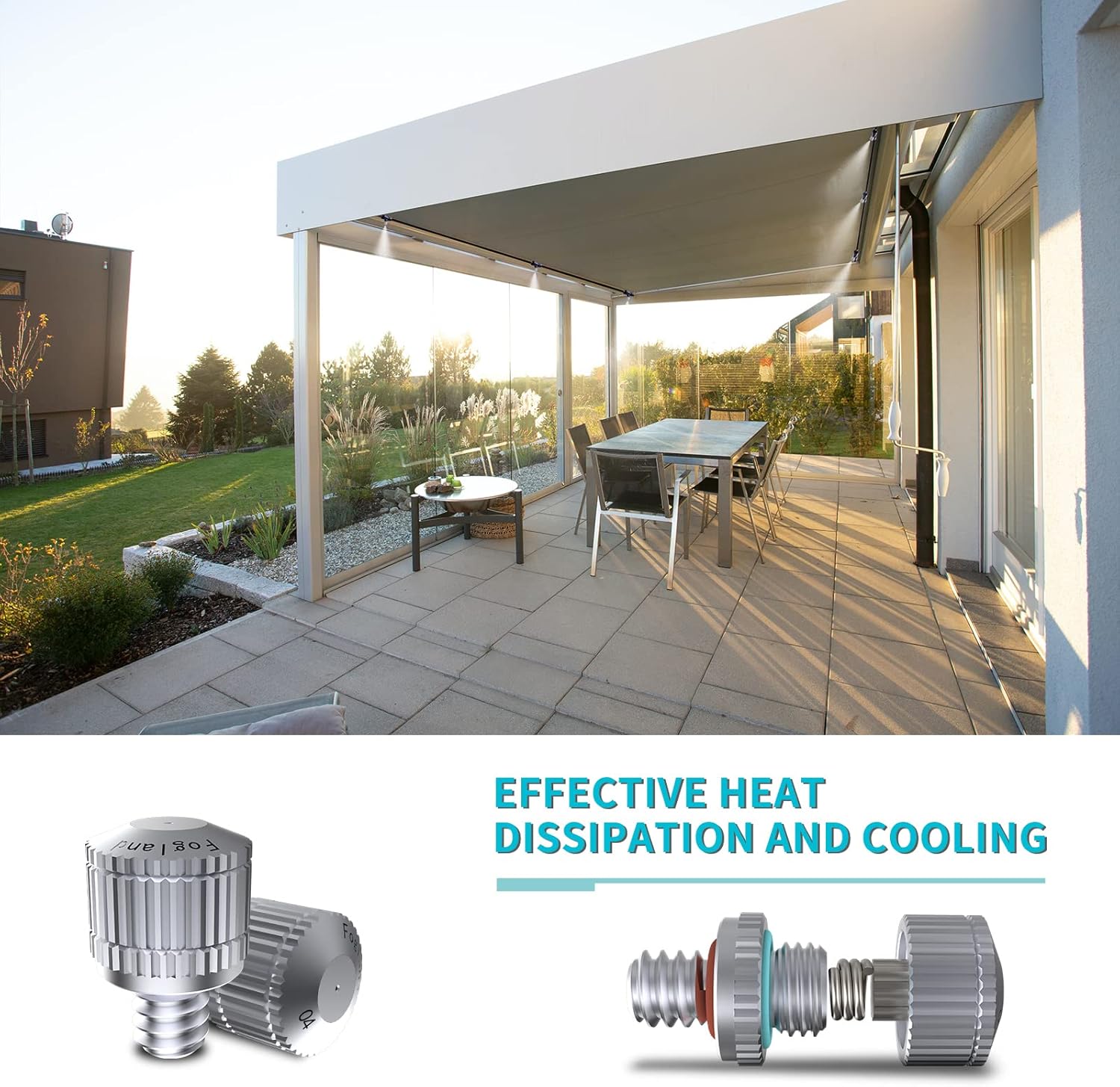 - [Atomization effect]: Fogland newly upgraded mister nozzles can produce water spray with larger flow rate and coverage distance. Atomized particles are fuller and the cooling capacity is strengthened, which can reduce the ambient temperature by 10°C or 50°F.