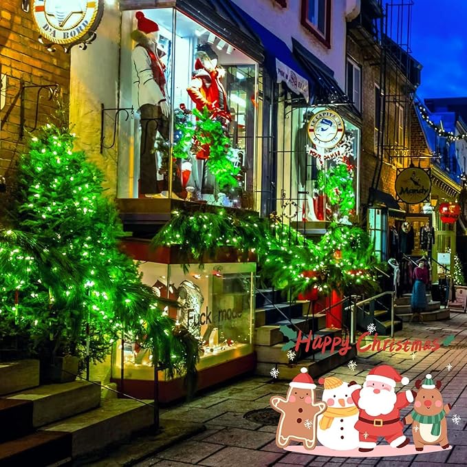 JMEXSUSS 4 Pack Green Solar Christmas Lights, Total 400 LED 132FT Solar String Lights Outdoor Waterproof, 8 Modes Copper Wire Solar Fairy Lights for Patio Garden Yard Tree Christmas Decor