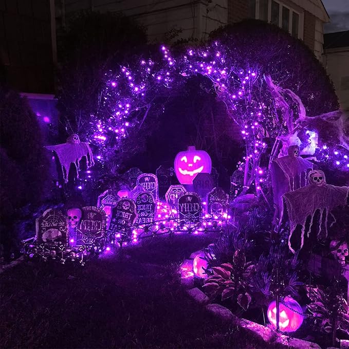- 【Any Weather Suitable & Safety】When you are celebrating holiday outdoors, it would be terrible if the lights were extinguished by a sudden rainstorm. Fortunately, our purple Halloween lights outdoor are IP65 waterproof, so don't be anxious about rain interrupting your recreation. Besides, insulated copper wires keeps the lights cool for safety.